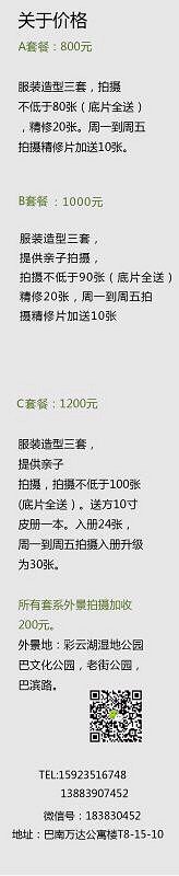 你看我下边发的价格,套系可以随便选择,满10人成团,价格不变,多送10张精修和3张入册照片