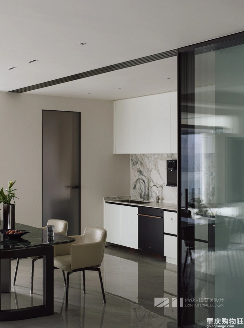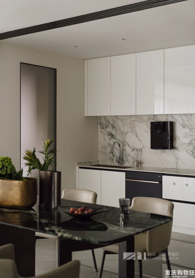 The open kitchen uses the structure to introduce light and create a visual union. The collision of materials and the texture of the kitchen show a transparent luster under the natural light, and exquisite craft details are displayed in every corner of the space.