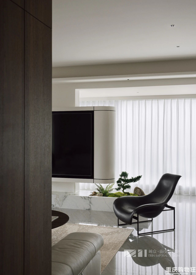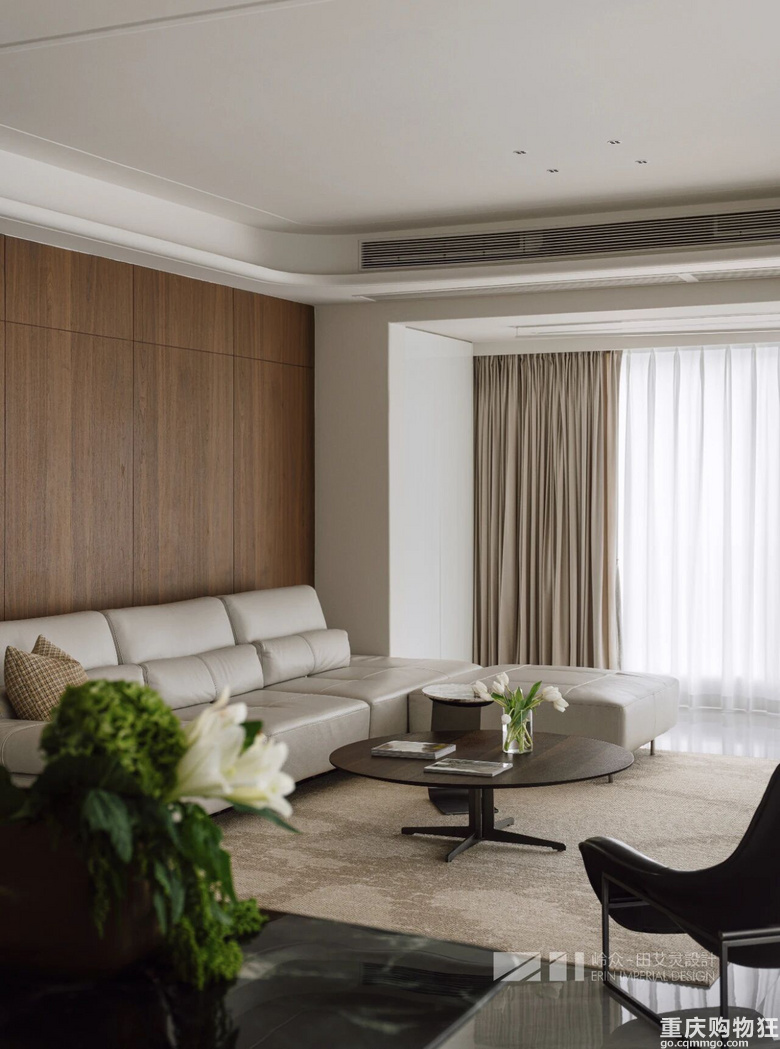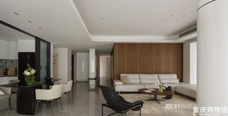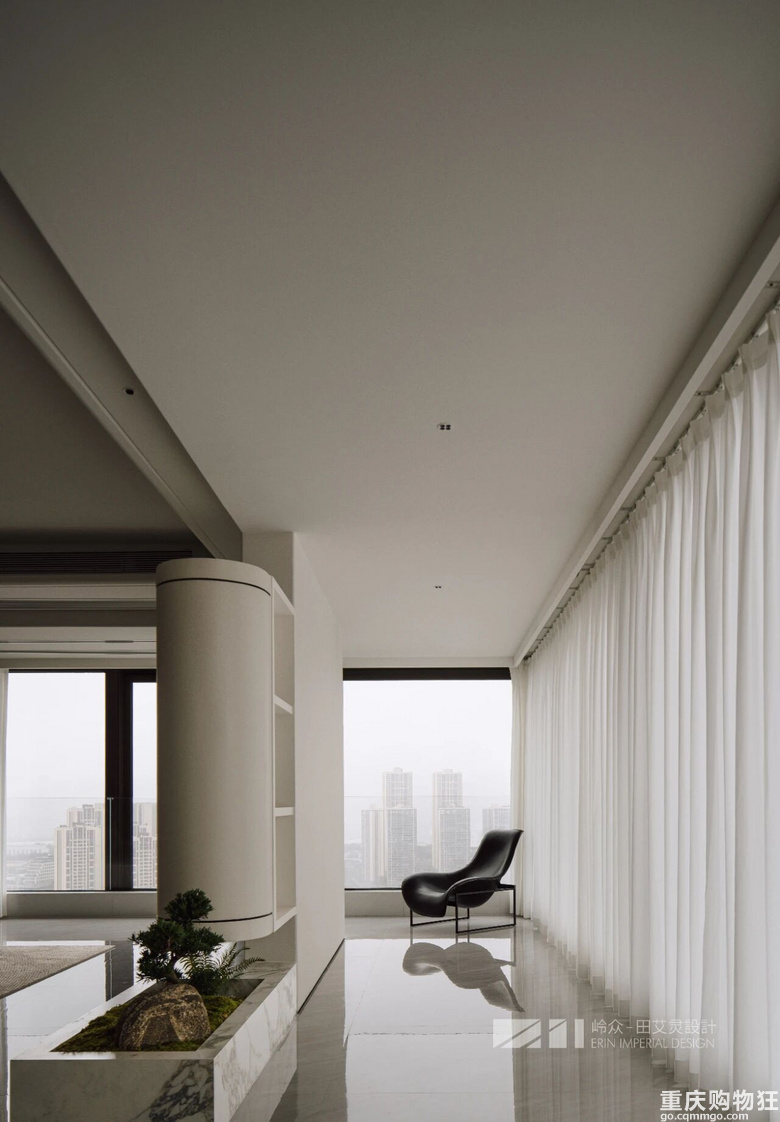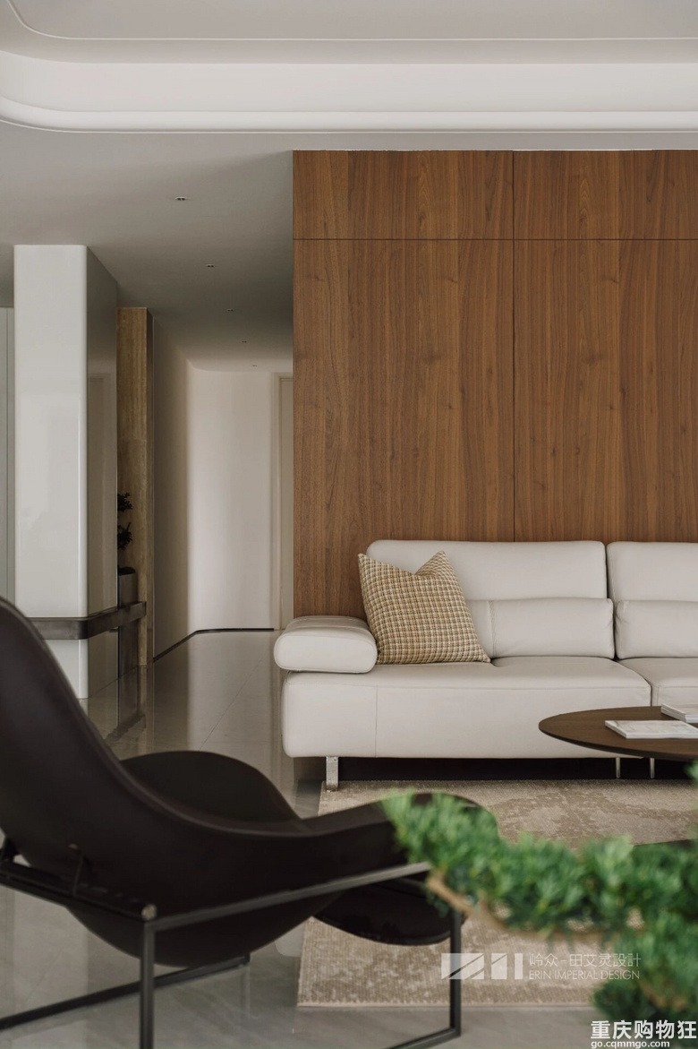观与感,光与色,瞰江而居,境随心转。几何线条勾勒出高度纯净的场域,木色包裹空间的松弛情绪,留白区域为居者者留下丰富的想象空间,虚实对比,述说着优雅与简约之美,形成视觉上的“呼吸感"。