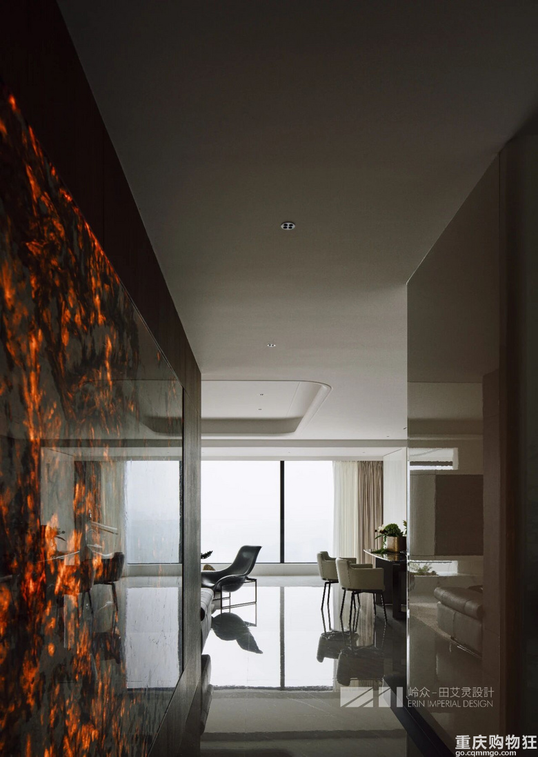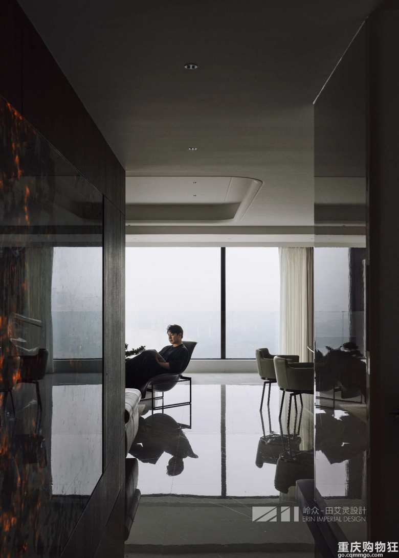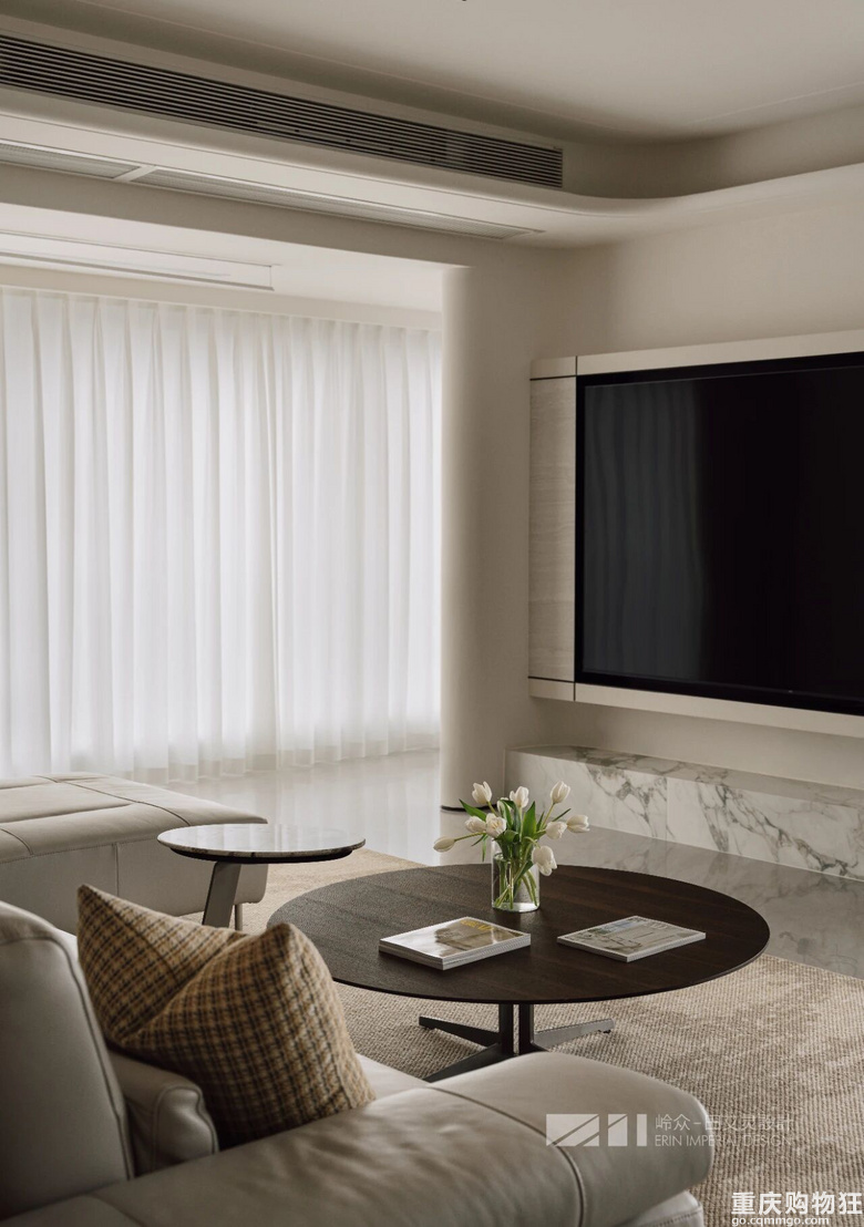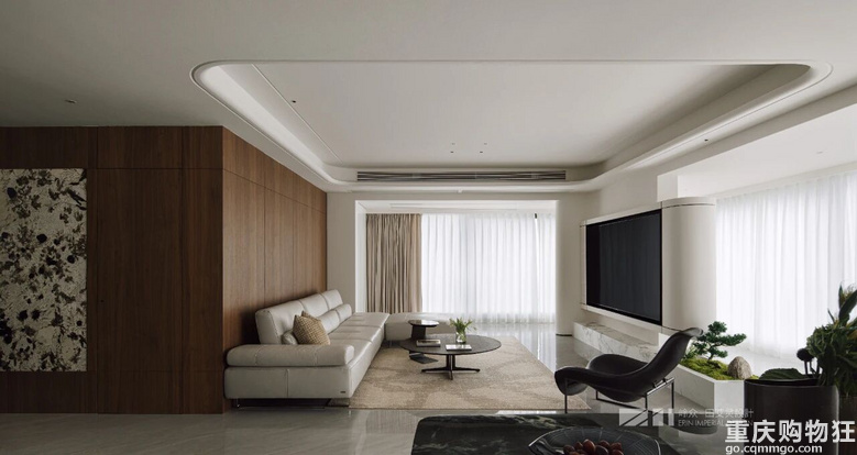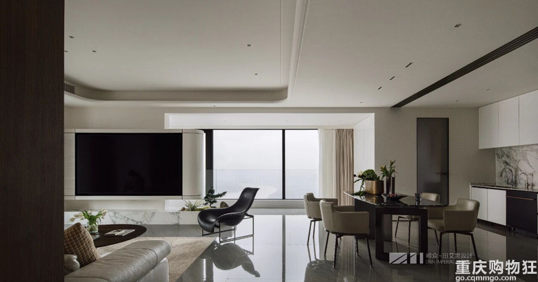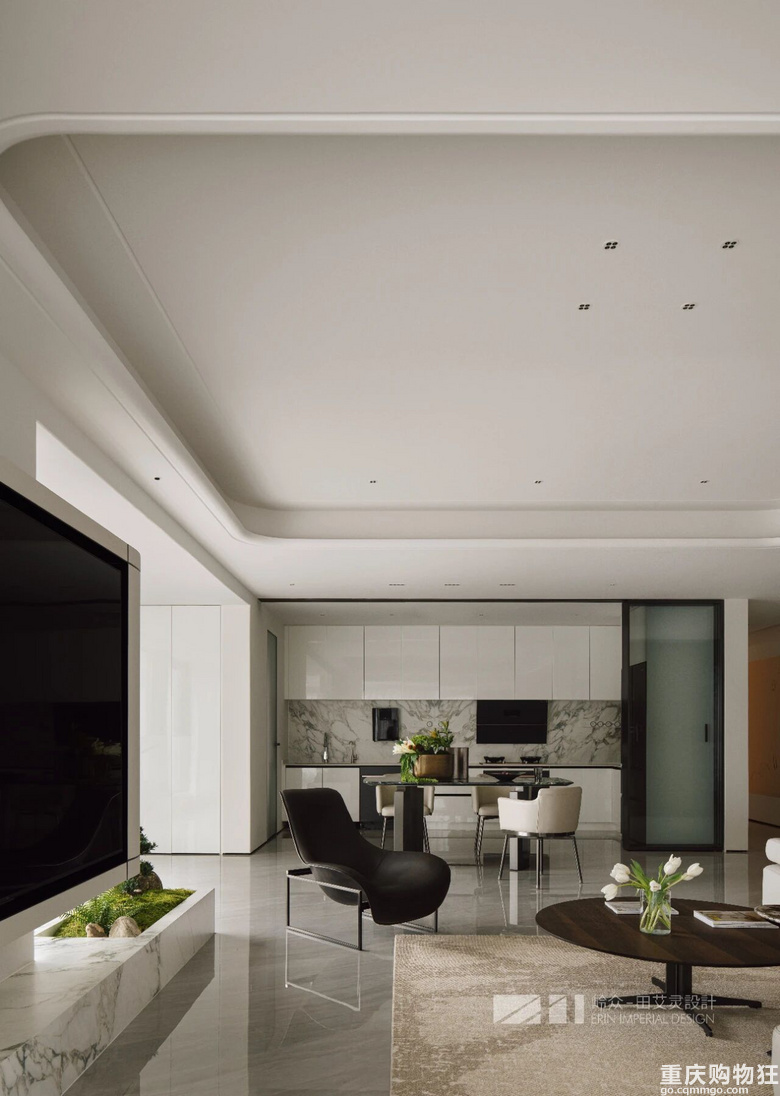 观与感,光与色,瞰江而居,境随心转。几何线条勾勒出高度纯净的场域,木色包裹空间的松弛情绪,留白区域为居者者留下丰富的想象空间,虚实对比,述说着优雅与简约之美,形成视觉上的“呼吸感"。