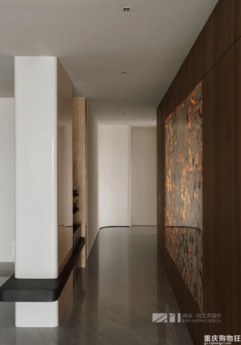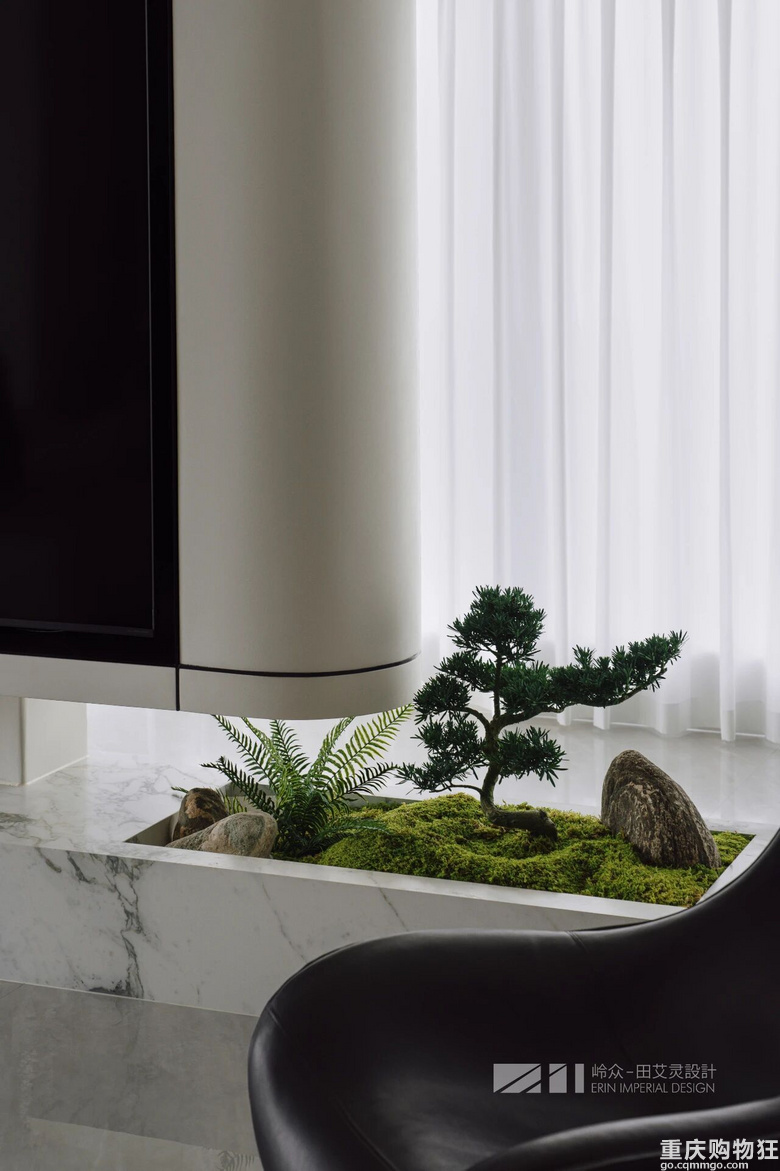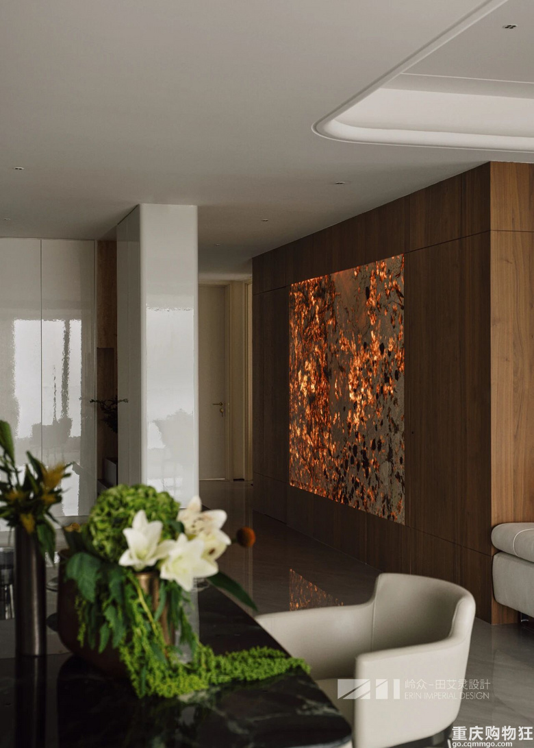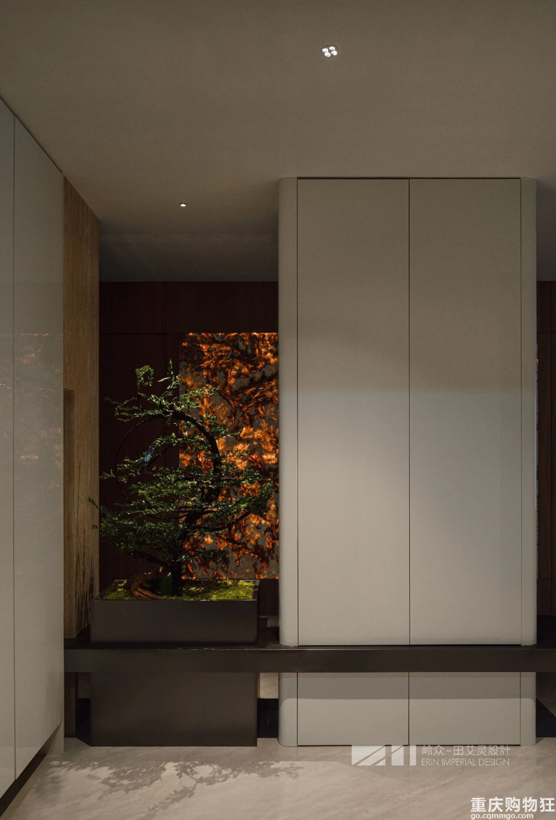 于角落里拾得妙境,玄关处以绿植端景和透光奢石为基底,温润的主色,具有美感的线条和形体使空间感提升,绿植的点缀优雅而清新,展现出独特节奏和情绪。