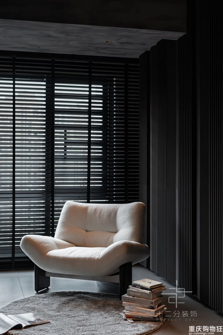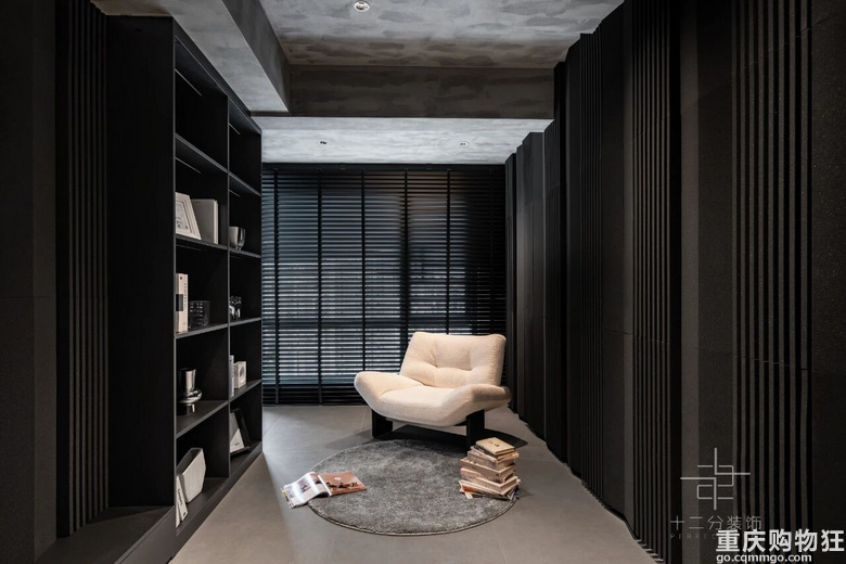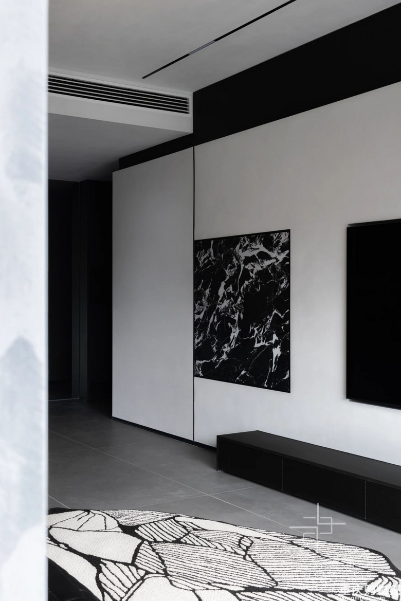 材质分割线、体块之间的转折面,经典的黑白调性不断在结构中交互错落,形成极简的克制美学,再以氛围灯光为主,塑其空间的宁静与包容性。