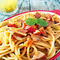 意面,面条的一种,就像意大利通心粉相似,主要的调味料是番茄,不喜欢番茄的就不太喜欢。