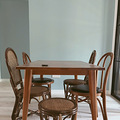 配上地面的花砖,整洁干净开门就可以看到。开门的那一刻其实会有一种好奇感,厨房的落地玻璃,隔而不断,隐隐约约,让人好奇里面就近有怎样的世界。餐厅的区域原始改造前原本破败的墙体室外有雨水渗入,空间比较小,仅可以容纳很小的餐桌与餐椅。改造后,靠墙设计的火车凳,配上两把椅子...