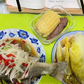 白灼虾(这个东西好像必点一样,每个桌席都有)、玉米蟹、清蒸边鱼(本来可以选清蒸鲈鱼的,在服务员的建议下改成了边鱼,她说边鱼的刺要大点,希望吧)、客家鸡、野菌烩海参、活水兔、金钱芙蓉、干江豆炒肚条、红烧鳝鱼、番茄炖牛肉汤、金瓜八宝、鲜椒仔排、三时令小菜、尾汤。三点心。...