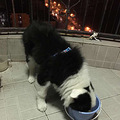 时候看到一只狗狗在路上。走路看起来有点迟钝,反应很奇怪。走过去抱起来就到处问,也没找到主人。这个时候老婆说,狗儿的眼睛似乎有点问题,我一看,白内障,两只眼睛雾蒙蒙的,多半是被遗弃了。于是我们两个跑到小区附近的宠物店,问了老板,老板说这是一只老狗了。我们给他买了包狗粮...
