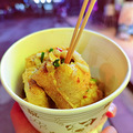 小小的一方片,外面一层薄皮里面很嫩。运气好遇到老资格的烤豆腐,会问你要普通的还是臭的,我都会要臭的。其实一点都不臭,微微发酵过的豆腐,不像长沙的臭豆腐那么臭,只是皮里面的豆腐发酵后变得黏稠,口感有点像腐乳但又没有那么紧实。