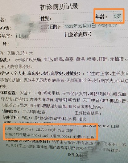 看到冀连梅药师提醒昨天上午,一位基层儿科医生通过微信给我发了下面这份病历记录,希望通过我向基层儿科医生呼吁一下,不要给儿童开具维C银翘片。这是一张5岁孩子的病历记录,上面写了孩子因为出现发烧、头痛、咽痛、鼻塞、流涕、喷嚏等症状,被诊断为急性化脓性扁桃体炎和鼻咽炎,被开具了抗生素、维C银翘片和布洛芬混悬液这三种药。