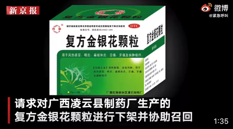 要说当妈之后最怕什么?孩子生病,绝对可以位列Top1 可今年又有一款药出事了,而且还是家家都有的常用药 据四川日报3月17日消息,广西凌云县制药有限责任公司生产管理混乱、记录不真实、生产过程无法追溯,存在较大风险隐患。所生产的复方金银花颗粒需进行下架并召回。 复方金银花颗粒被广泛用于风热感冒(头胀痛,咽喉红肿疼痛,咳嗽,痰粘或黄,鼻塞流黄、浊涕,口渴等)咽炎,扁桃体炎,是很多家庭的常备药! 其实