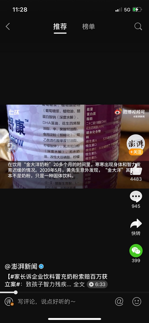 2017年9月,黄先生女儿寒寒(化名)出生后得了一场肺炎。出院时医生告诉他要冲服“深度水解奶粉”,独自抚养女儿的黄先生购买了“金大洋”奶粉产品,在饮用该“奶粉”20多个月时间里,寒寒出现身体和智力发育迟缓的情况。2020年5月,黄先生发现,“金大洋”其实根本不是奶粉,只是一种固体饮料。到现在,3岁半的寒寒仍无法走路说话,目前被鉴定为智力残疾二级。
