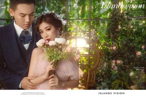 突然就有了灵感,我的婚礼为什么不可以是这个样子的,既然婚纱照都可以实现我的童话梦,我想我的婚礼也应该如此。 众所周知,应该去千岛的美女们很多都会选他们的白马这一套,但是他们白马的也有几个风格,我唯独就相中了这一套,真的很童话,以前觉得头纱只能用传统的来代替,现在我就对这套造型情有独钟了,结婚当天, 我也准备整这个造型,婚礼也用森系的童话风,哈哈,拍个婚纱照,把我的灵感全都挖出来了!