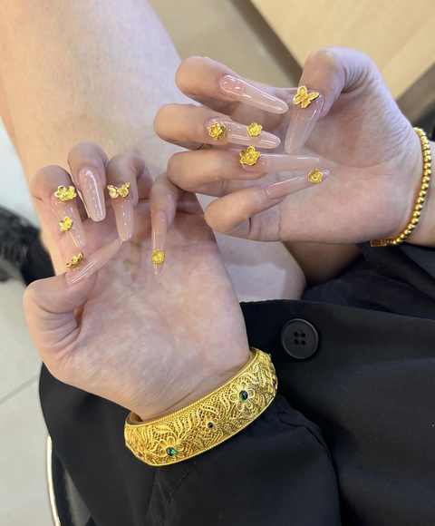 这个也太土豪了吧!网上看到的~~@@居然是用闲置黄金来做的美甲第一次听说黄金还有闲置的,,,哈哈哈