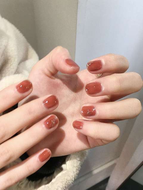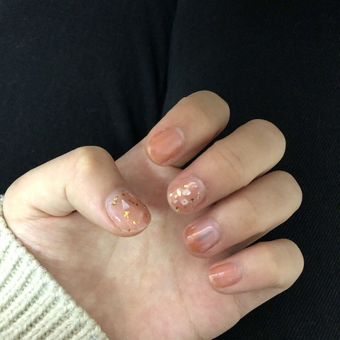 今年冬天好喜欢这种显白冰透系西柚色加金色还有小亮点 无名指跟食指微微用的璀璨金做晕染