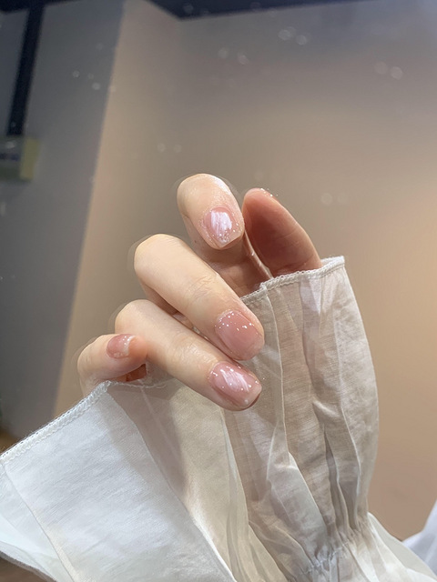 乳白色的冰透美甲,单独做底色,也超级美,仙气十足,加上粉粉红的晕染色,亮面是水当当,可爱温柔气质,这款美甲可甜可盐,显得高级又时尚