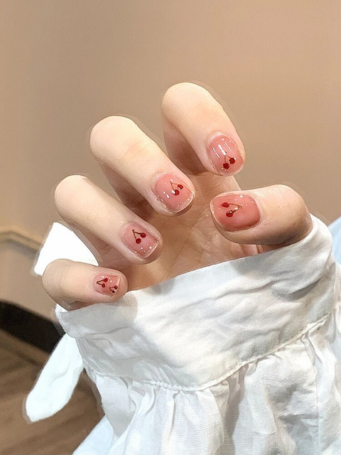 粉粉的红豆糕色看上去特别甜美点缀上小樱桃装饰显得手白白嫩嫩可可爱爱
