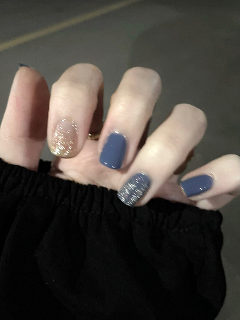 我发现带点灰调的蓝色美甲好显高级