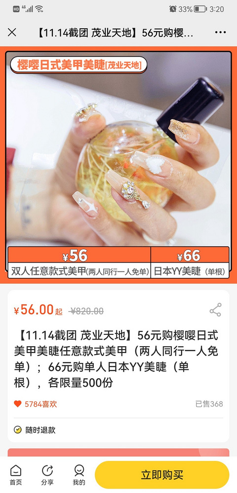 56元2人的款式美甲,姐妹们赶紧买起来,真的好划算