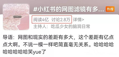 最近小红书的网红滤镜这个事可以说是闹得沸沸扬扬,对应的话题微博阅读一度达到了4亿。 网友主要诟病的就是,小红书的景点种草滤镜实在太严重,真的实地去探访之后,才发现踩了深坑。 反正看了这波对比图,底线再低也没法接受——这些地方但凡比家附近的公园好看一丁点,都不至于被骂得这么惨。 转自Miss Young