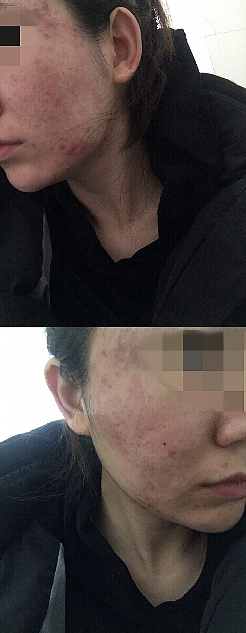 做了黄金微针20天左右去复查,用3d皮肤检测仪看到了改变右边的肤色去红了,看上去均匀了,脸上痘痘变少了