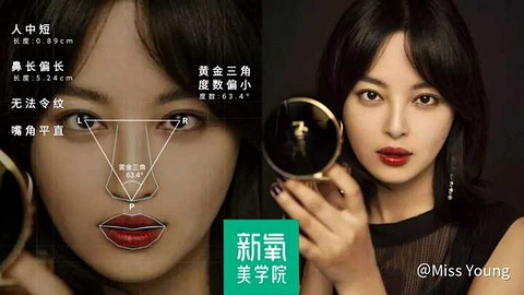 唇部与整体的适配嘴唇的唇线与口唇线的形态不同,软组织形态也不同,因此适配的风格与色彩也都是不同的,掌握好自己适合的风格,才能更好的让唇部支撑起在面部审美的作用。1. 唇部与色彩在适配中,黄金三角的大小起到十分关键的作用,这也是可以最直观的看出自己面部五官成熟与幼态程度的办法黄金三角度数越小,面部整体越偏成熟,反之黄金三角度数越大,则面部更偏纯真幼态。转自Miss Young