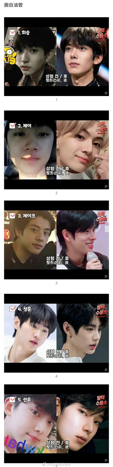 [网友整理的韩国男团某些成员的鼻子变化,是对这种小翘鼻有什么执念吗