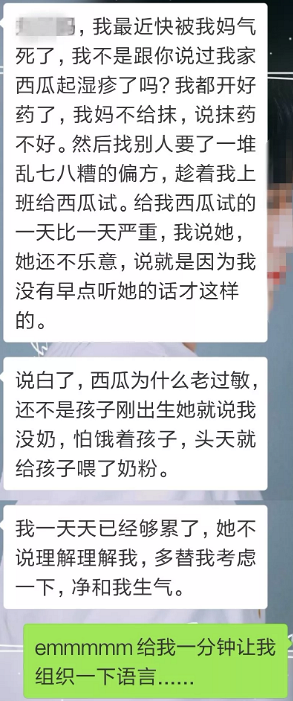身为一个光荣的工作者,最近我发现,我的闺蜜有种把我当街道居委会大妈使的趋势。总是频繁且不定时地和我吐槽她妈妈。我感觉我把聊天记录打印出来,就是一本带着血泪的《隔代育儿之我妈帮我带娃》。 下面请大家欣赏第三章第三回,章节名为“医生开药你不使,无门偏方你非瞎试。” 其实,不光是我闺蜜,包括我在内的很多妈妈,都因为隔代育儿产生的矛盾而饱受摧残。他们总是固执己见,固守着传统落后甚至对孩子有害的育儿观念,还