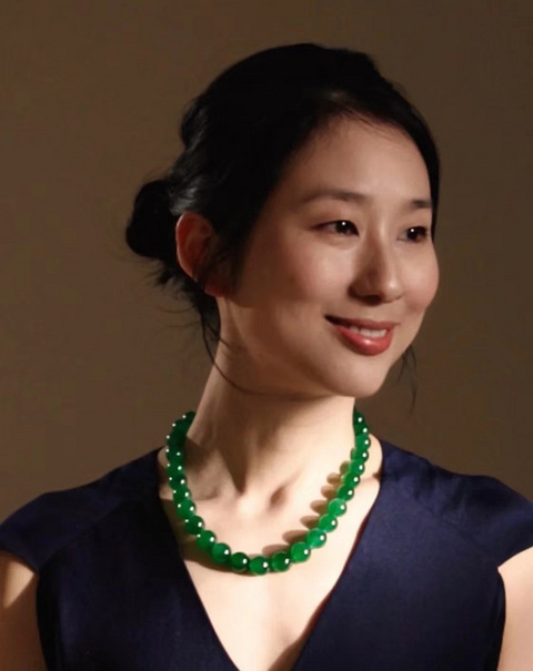 佳士得美女拍卖官陈良玲深情演绎即将千5月25日香港“瑰丽珠宝及翡翠首饰”春季拍卖中领衔登场的 33颗帝王绿天然翡翠珠项链。吟这条珠圆玉润、华丽非凡的天然翡翠珠项链上的顶级帝王绿珠子浑然天成、每-一颗都属?玻璃种质,品相近乎完美。433颗珠子巧合地呼应三三不尽、生生不息之意。上珠子直径由约 12.3至15毫米,如此稀有尺寸更尽显霸气。,女无论任何角度都能看到通透绿光,清澈如水,散发着浓艳碧翠的帝王