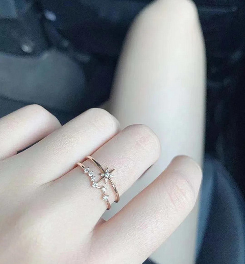 周大福戒指的细节简直做的太好了! 折线的造型,上面镶嵌了11颗钻石,戴在手上超级闪扑 Blingbling的就像夜空中的星星 怪不得名字叫漫漫星河