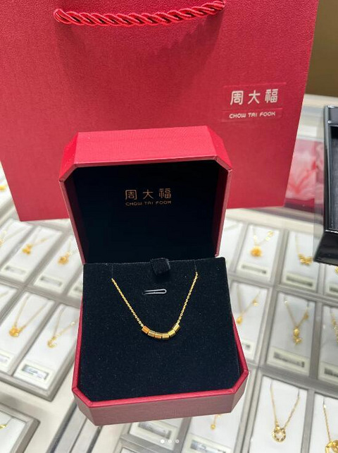 周大福方糖金项链,实物真的是太闪了!看一眼就被种草下叉了