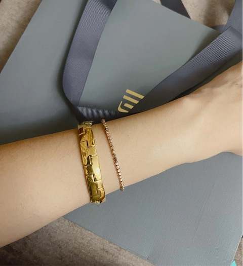 拿在手里平平无奇的金手镯,戴上手腕闪闪发亮