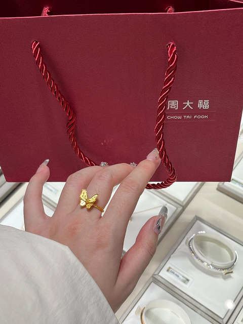 买黄金其实六福也不错啊!下叉了新款紫荆花金戒指,也太精致了吧