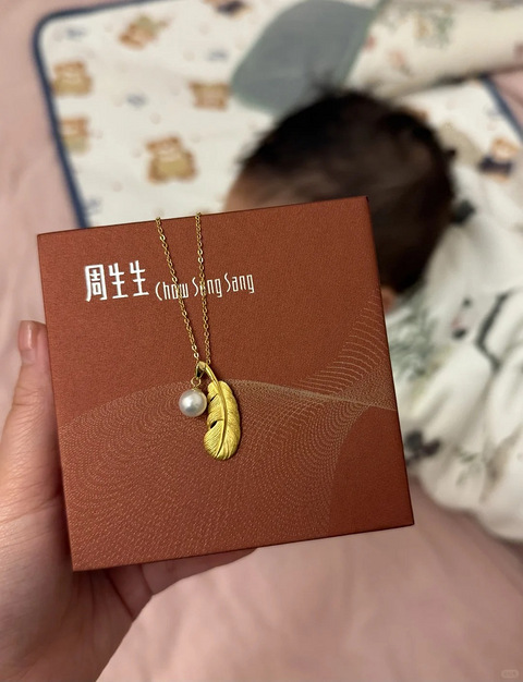 珍珠也是在唯品会买的,一开始没舍得下手,折算一克要750,贵。找了很多家水贝的店,也没有同款,可能羽毛款申请专利了。准备想下手时碰到唯品会周生生大牌日!