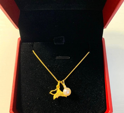 今天的快乐是周大福鱼尾吊坠给的一眼看上了这个超级精致的美人鱼鱼尾吊坠,小小的很精致,单独戴的话稍微有些单调。 但是配上一颗亮亮的小珍珠,整体质感一下就提高了!