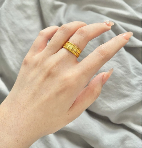 周大福金戒指,神仙颜值绝美的素圈叠戴