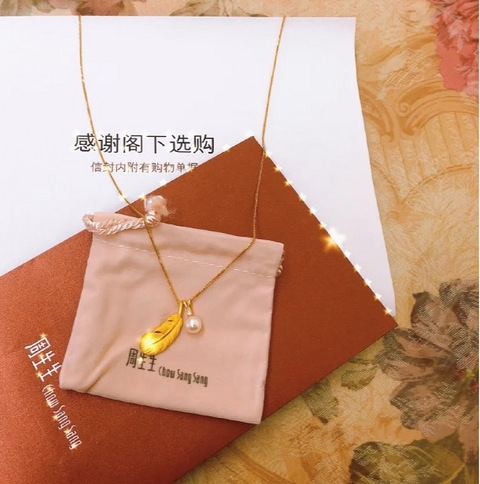 我终于也拥有了火遍全网神仙搭配,周生生家的小羽毛吊坠和小珍珠