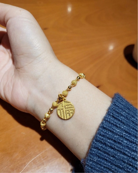 周大福买的手链,又另外配了一块小福牌,真的好漂亮