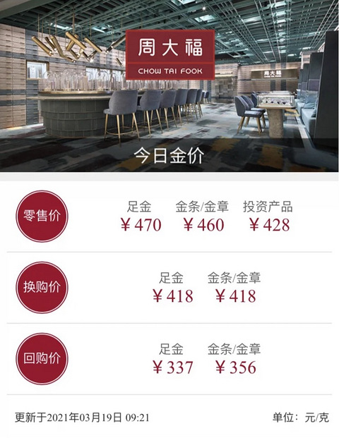 周大福今日金价3.19