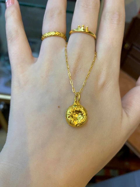 买黄金首饰我老爱去老凤祥买这个小坠子就是我昨天刚找导购拿到手的上面的雕花是真的好看,重量就2g左右