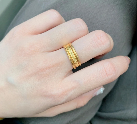 素圈,麻花、小宽戒(实在不知道叫什么) 这三款一起叠戴 超赞!美爆了!