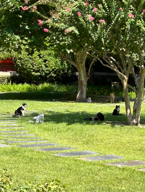 听前辈说这都是有编制的猫,今天见识到了悠闲地聚在一起晒太阳,见到人也不躲,有几只还上来喵喵叫。回头拿猫条来试试