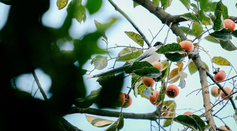 灰喜鹊吃柿子