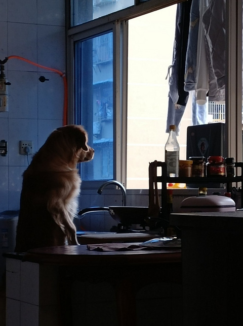 事情是这样的。 它乱撕纸,还吃了我的小饼干,所以我饿了它一顿。然后就发现,它扶着灶台,望着远方。 它这是打算自己热狗粮吗