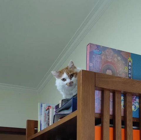 lz原来没染过,这次心血来潮把刘海染成了银色。回家叫猫,猫死活不肯认这是我。对染完发的新我视而不见。到处找我。。。然后就在书架顶上用下图的表情一直观察lz。。。 感觉也不是没有认出来。。。难道是被丑到了?