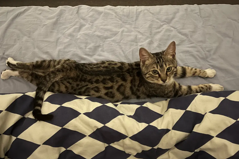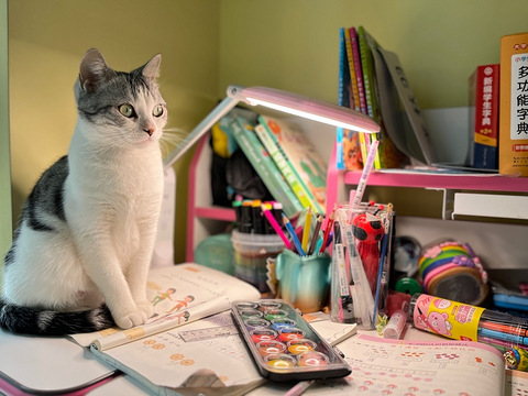 美短麻花妹妹2岁半了,真是特别特别的温柔,从来没有养过这么温顺的猫咪。肚皮、尾巴随便摸,跟她玩耍从来都不伸爪子。除了猫粮,对其他任何食物都不感兴趣,桌子上的饭菜从来都不碰!给她点赞吧。 最喜欢的事情:当监工,监督小姐姐做作业!