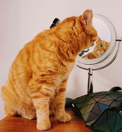 大橘第一次照镜子被吓到!