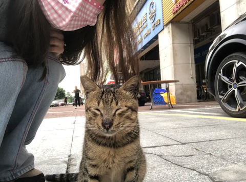 路边看到一只小猫,很想去合影,还好比较配合