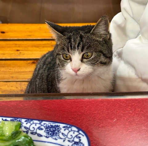 吃饭遇到的小猫,太可爱了!