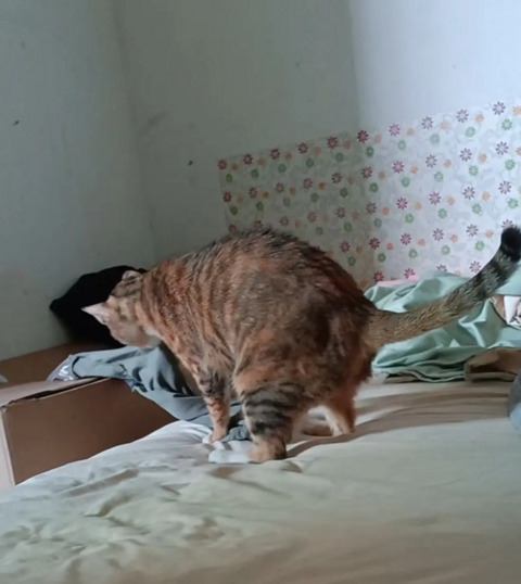 去年九月份搬进了一个老破小,我刚放好行李拖完地又简单地铺了床,我家猫就赶紧给自己整了个窝。