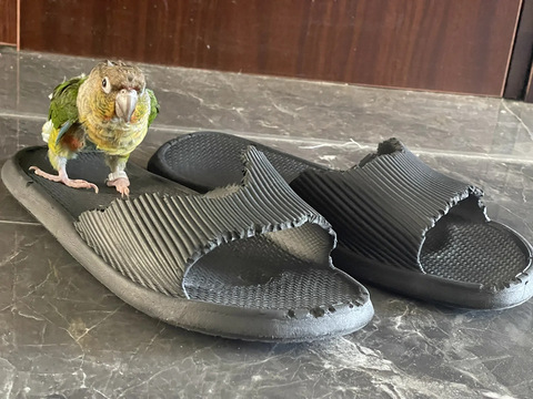 纯好奇,鹦鹉的战斗力真的这么厉害吗?把拖鞋都磕坏了