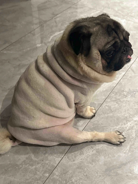 笑哭了这个网友的狗剃毛以后,变成了千层塔小狗了